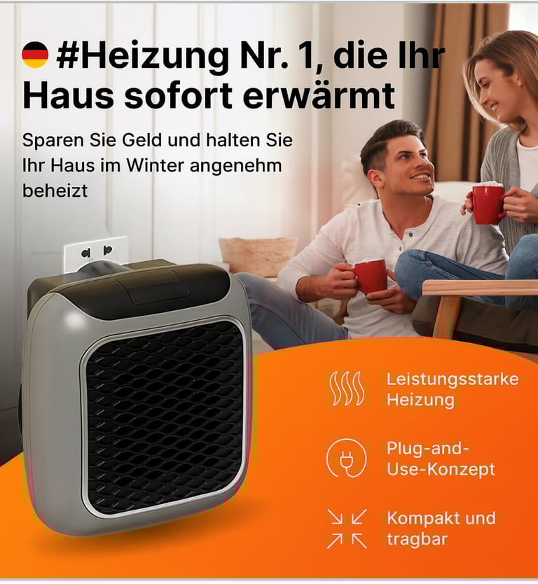 VelaWarm Heater™ – Ihre intelligente Lösung für sofortige, effiziente Wärme im Zuhause! Der VelaWarm Heater™ bringt leistungsstarke, energiesparende Wärme direkt in Ihr Zuhause und sorgt dafür, dass Ihre Räume während der kalten Jahreszeit warm, gemütlich und angenehm bleiben. Dank moderner Keramik-Heiztechnologie liefert er schnelle und gleichmäßige Wärmeverteilung – und das bei deutlich geringerem Energieverbrauch, perfekt für alle, die zuverlässige Wärme ohne hohe Stromkosten suchen. Entwickelt für Komfort und Bequemlichkeit, hilft der VelaWarm Heater™, die ideale Raumtemperatur aufrechtzuerhalten, sorgt für Entspannung im Winter und beseitigt das unangenehme Gefühl kalter Räume. Sein kompaktes, elegantes und tragbares Design fügt sich nahtlos in jede Umgebung ein, sodass Sie Schlafzimmer, Büro, Wohnzimmer oder kleine Räume in wenigen Sekunden aufwärmen können. Keine komplizierte Installation – einfach einstecken und sofortige Wärme genießen. Nutzen Sie jetzt unser zeitlich begrenztes Sonderangebot: 1 Einheit: €49,99 pro Gerät, 2 Einheiten: €44,85 pro Gerät, 3 Einheiten: €37,49 pro Gerät, 4 Einheiten: €34,37 pro Gerät, inklusive kostenlosem Versand und 30-Tage-Geld-zurück-Garantie. Schließen Sie sich tausenden Kunden in Deutschland an, die dem VelaWarm Heater™ vertrauen – die clevere, effiziente und erschwingliche Art, warm zu bleiben!*